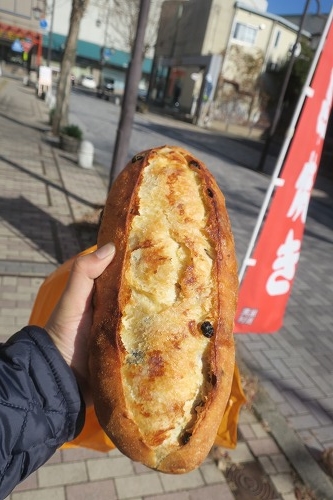 パンはちぎって食べるとおいしい、ぶどうパンはとくに好き、500円。